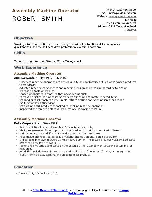 Sample Resume for assembly Line Operator has a variety pictures that associated to find out the most recent pictures of Sample Resume for assembly Line Operator here, and moreover you can acquire the pictures through our best Sample Resume For Assembly Line Operator collection.Sample Resume for assembly Line Operator pictures in here are posted and uploaded by Adina Porter for your Sample ... Machine Operator Resume Objective Example. If you're an entry-level machine operator, the resume objective introduction is a more suitable choice to jumpstart your career because you can emphasize your personal traits. The career / resume objective is