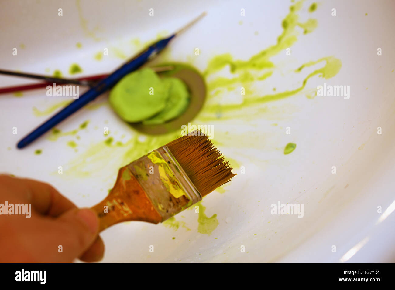 Otherwise to remove dried paint from a brush, whether its enamel, lacquer, oil or water-based, use paintbrush restorer. Put on your gloves, safety glasses and dust mask, then pour the How To Paint How to clean paint brushes You can save a lot on paint projects just by looking after your brushes. I want my red brush to clean quickly so that I can get into the yellow and paint a different area. But cleaning the red out seems to take FOREVER! Does the paint dry because it is leaking the contents of the water in the acrylic back into