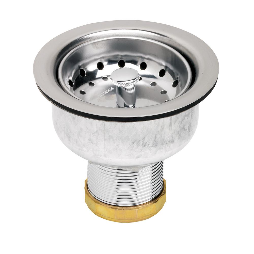 Standard Post Sink Strainer in Stainless Steel The Glacier Bay standard post kitchen sink The Glacier Bay standard post kitchen sink strainer comes in stainless steel finish. This strainer has a basket that prevents debris from entering the drain and can easily be removed for cleaning. Your kitchen is one of the most used rooms in your home and your kitchen sink needs to be durable to meet the demands of that traffic. Customize your kitchen sink with matching faucet accessories. Choose from strainers and stoppers that are offered in finishes such as Champagne Bronze, matte black, stainless and more.