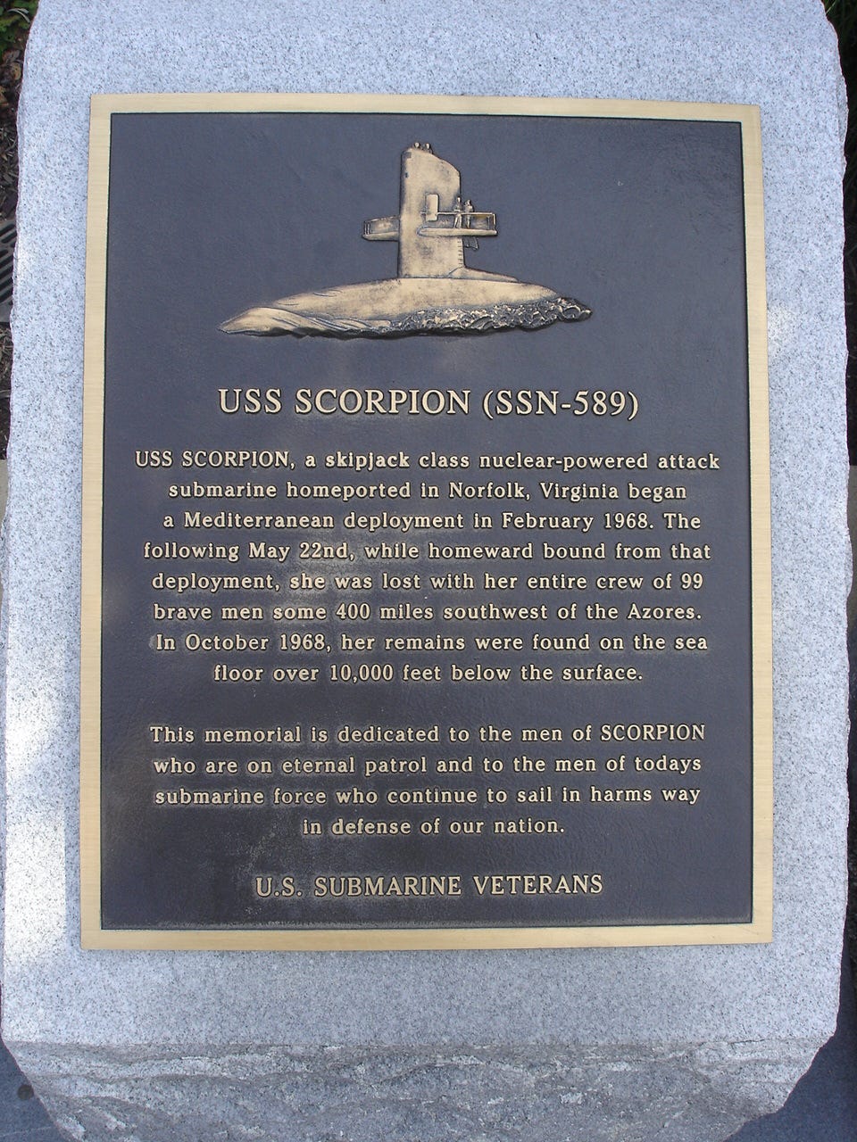 Source: amazon.com The Disappearance Of The Uss Scorpion: The History Of The Mysterious Sinking Of The American Nuclear Submarine: Charles River Editors: 9781537026862: Amazon.Com: Books Source: submarinebooks.com Scorpion Down Uss Scorpion Ssn 589 Submarinebooks.Com Source: dw.com French Submarine That Vanished In 1968 Found In Mediterranean News Dw 22.07.2019 Source: poststar.com Submarine Memorial Ceremony To Offer Sense Of Closure For Local Family Local Poststar.Com Source: jmsnet.com Uss Scorpion Documentary For Discovery Channel Jms Naval Architects Source: wearethemighty.com This Is What Happened To The Uss Scorpion We Are The Mighty Source: blog.marinersmuseum.org 55Th Anniversary Of The Sinking Of Uss Thresher Mariners' Blog Source: warhistoryonline.com The Mystery Of The Sinking Of The Uss Scorpion Source: amazon.com Amazon.Com: The Disappearance Of The Uss Scorpion: The History Of The Mysterious Sinking Of The American Nuclear Submarine (Audible Audio Edition): Charles River Editors, Ken Teutsch, Charles River Editors: Audible Audiobooks Source: michelleule.com The Scorpion And The Titanic Michelle Ule, Author Source: reddit.com May 17Th, 1968: "Executed Event Submiss At 271915Z For Uss Scorpion. All Submarine Units Surface Or Remain Surfaced Until This Message Cancelled." The Mystery Of Ssn 589, A Us Nuclear Submarine That Sank Source: navalnews.net How Many Nuclear Submarines Have Been Sunk? Naval News Source: navytimes.com The Last Secret Of The Scorpion Source: military.com 55 Years After Thresher Disaster, Navy Still Keeps Secrets On Sub Loss Military.Com Source: interestingengineering.com U.S.S. Thresher And Scorpion The U.S.'S Lost Nuclear Submarines Source: navytimes.com The Last Secret Of The Scorpion Source: alanscandrett.github.io Ssn Wrecks Source: pinterest.com Picture Of The U.S.S. Scorpion Wreck Which Was Lost In 1968 With All Hands Near The Azores. Us Submarines, Nuclear Submarine, Submarines Source: navytimes.com The Last Secret Of The Scorpion Source: interestingengineering.com U.S.S. Thresher And Scorpion The U.S.'S Lost Nuclear Submarines Source: navsource.org Submarine Photo Index Source: bluebird-electric.net Nuclear Submarines Lost At Sea Sinkings All Hands Das Boot Source: ussvicb.org Families Of The Scorpion Secrecy Of Disappearance Compounded Families' Pain By Ed Offley Seattle Post Intelligencer Military Rep Source: bonefishbase.org The Loss Of The Uss Scorpion: Myths, Legends, & Reality Source: popularmechanics.com Uss Thresher Why Did The Thresher Submarine Sink? Source: popularmechanics.com The Hunt For The Titanic Was Actually A Hunt For Lost U.S. Nuclear Submarines Source: pinterest.com Uss Thresher (Ssn 593) Uss Thresher, Submarines, Us Navy Submarines Source: navalnews.net How Many Nuclear Submarines Have Been Sunk? Naval News Source: wtvr.com Uss Scorpion Disaster That Killed 99 Sailors Remains Maritime Mystery Source: medium.com Mysteries Of The Sea: What Sank The Uss Scorpion? By Michael East The Mystery Box Medium Source: warhistoryonline.com The Mystery Of The Sinking Of The Uss Scorpion Source: history.navy.mil Nh 97223 Kn Wreck Of Uss Scorpion (Ssn 589) Source: medium.com What Could Have Happened To The Four Submarines That Sunk In 1968 That No One Seems To Figure Out? By Alastair Majury Medium Source: m.tribuneindia.com The Sunday Tribune Spectrum Article Source: gigazine.net The 1985 Survey That Discovered The Titanic Was Based On The Vacant Time Of The Search Of The Us Navy Sinking Submarine Gigazine Source: historynet.com The Uss Scorpion Buried At Sea Source: bonefishbase.org The Loss Of The Uss Scorpion: Myths, Legends, & Reality Source: dailyherald.com U.S. Sub Sinking 50 Years Ago Led To Safety Changes Source: seacoastonline.com Sub Thresher'S Nuclear Reactor Remains Buried At Sea News Seacoastonline.Com Portsmouth, Nh Source: engineers-channel.blogspot.com Engineering Channel: Uss Scorpion Submarine Disaster Source: hindustantimes.com Mystery Disappearance To Explosion: Major Submarine Disasters From The Past Hindustan Times Source: thinkmiamicountyhistory.com Uss Scorpion Source: amazon.com Amazon.Com: The Disappearance Of The Uss Scorpion: The History Of The Mysterious Sinking Of The American Nuclear Submarine Ebook: Charles River Editors: Kindle Store Source: militaryfactory.com Uss Scorpion (Ssn 589) Source: deviantart.com Nicktoons Unite Reacts Uss Scorpion Sinking By Titan994 On Deviantart Source: math.cmu.edu 1 Math 122 Fall 2008 Handout 5(A): Design Of The Uss Scorpion (A) (B) Source: pilotonline.com A Navy Submarine With 99 Sailors Mysteriously Disappeared 50 Years Ago The Virginian Pilot Source: en.wikipedia.org Uss Scorpion (Ssn 589) Wikipedia Source: navsource.org Submarine Photo Index Source: dailymail.co.uk Navy Releases Documents From Cold War Loss Of Submarine Uss Thresher Daily Mail Online Source: nationalinterest.org Uss Scorpion The National Interest Source: warfarehistorynetwork.com Nuclear Submarine Disaster Warfare History Network Source: thearmoredpatrol.com The Curious Case Of The Missing Uss Scorpion (Ssn 589) The Armored Patrol Source: nationalinterest.org The Mysterious, Sad Story Of The Doomed Submarine Uss Scorpion The National Interest Source: sputniknews.com 5 Most Mysterious Submarine Accidents Sputnik International Source: en.wikipedia.org Uss Scorpion (Ssn 589) Wikipedia Source: navytimes.com The Last Secret Of The Scorpion Source: wearethemighty.com This Is What Happened To The Uss Scorpion We Are The Mighty Source: extremetech.com Komsomolets: The Prototype Soviet Nuclear Sub Still Resting At The Bottom Of The Ocean Extremetech Source: submarinedocumentary.com Submarine Documentary Feature Documentary Submariners The Men Of The Silent Service From Diesel To Nuclear A Feature Documentary Film By Tony Rollo Of Nashville Submarine Sailor Uss Nautilus Uss Source: books.apple.com The Disappearance Of The Uss Scorpion: The History Of The Mysterious Sinking Of The American Nuclear Submarine (Unabrid