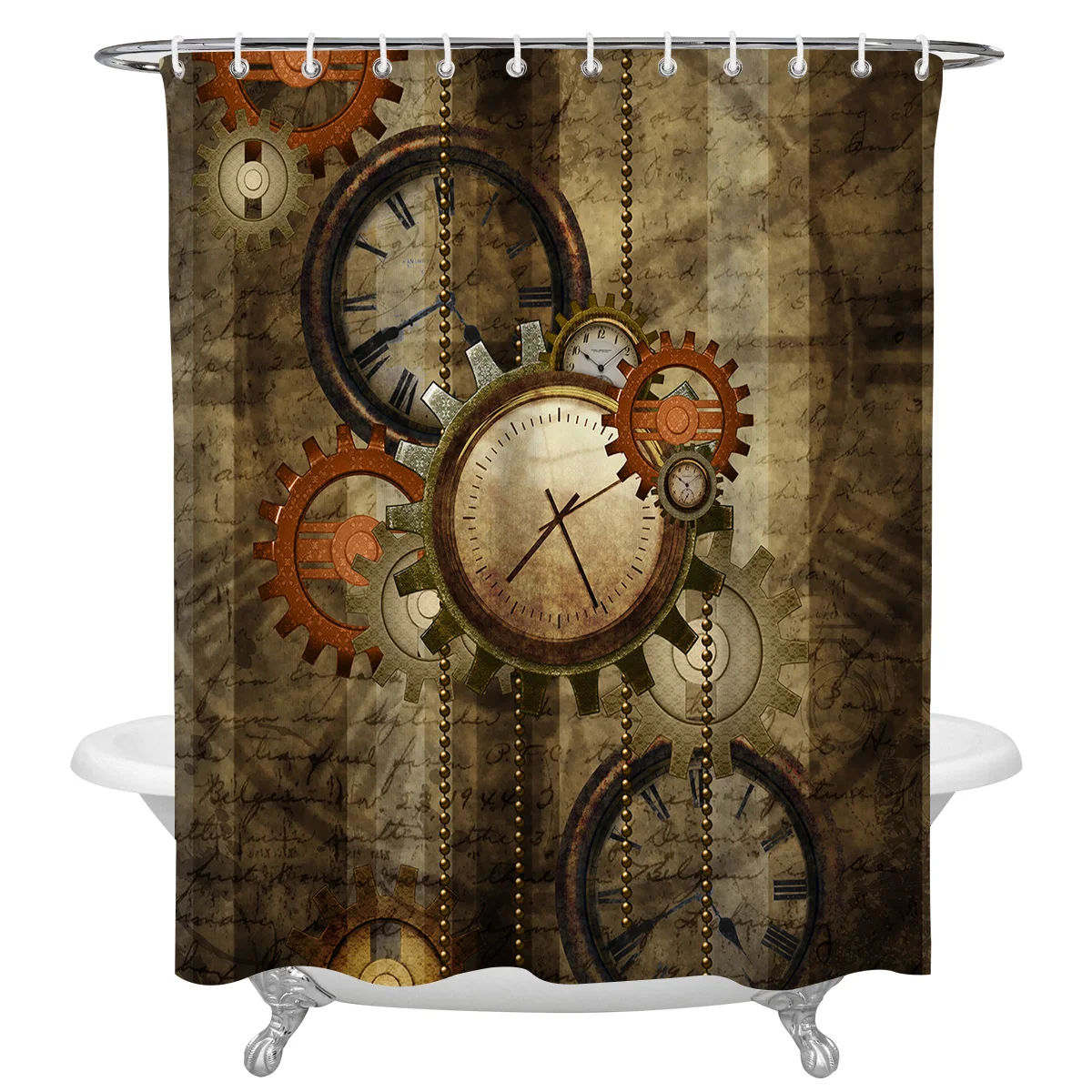 Retro Clock Gear Machinery Waterproof Fabric Shower Curtain For Bathtub Showers Polyester Bath Curtain Bathroom Accessories Shower Curtains Aliexpress