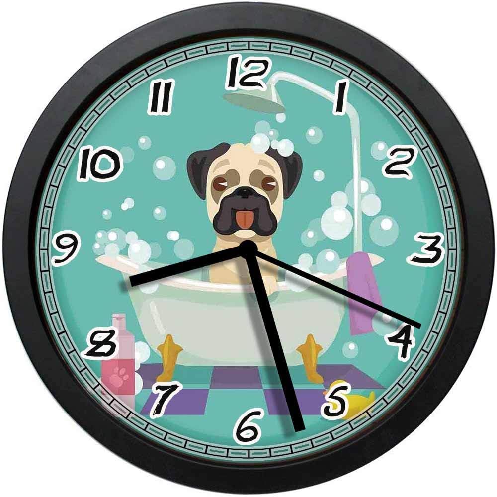 Amazon.Com: Round Wall Clock 10 Inch Silent ,Pug Dog In Bathtub Grooming Salon Service Shampoo Rubber Duck Pets In Cartoon Style Image,Decorative For Office,Home, Easy To Read: Home & Kitchen