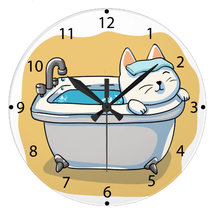 Cat Washing In The Bath Large Clock Zazzle.Com