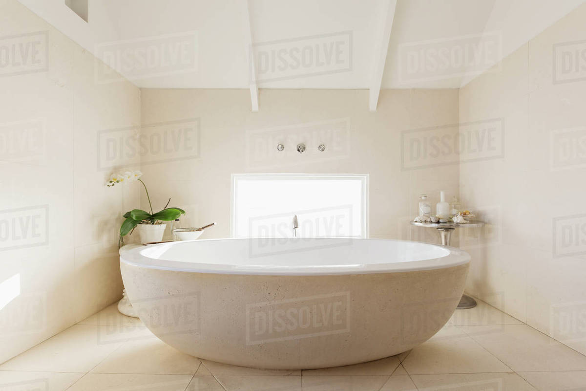Round Modern White Luxury Soaking Bathtub Stock Photo Dissolve