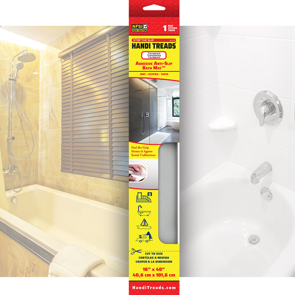 Bondera Tile Mat Set will replace mortar, thinset or mastic for a fast, easy and clean installation. Bondera is an advanced, pressure-sensitive tile adhesive on a roll for wall and countertop tile... Bathtub Bath Shower Mat PVC Anti-slip Floor Mat Non Slip Pad Safety Rug Grip USA. Dreambaby Heat Alert Anti-Slip Bath Mats Tub Treads Textured Adhesive 10ct, Blue. Non-slip Bathtub Sticker. Providing a safe way traction, this white adhesive vinyl anti slip safety bath mat has been engineered for foot-friendly showers, bathtubs and bathing areas. The Mat King Permanent Safety Bathtub Mat adheres to any clean, dry surface and
