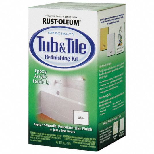 Rust Oleum White Tub And Tile Refreshing Kit, Gloss Finish, 70 To 110 Sq Ft/Gal Coverage, Size: 1 Qt 10Z875 7860519 Grainger