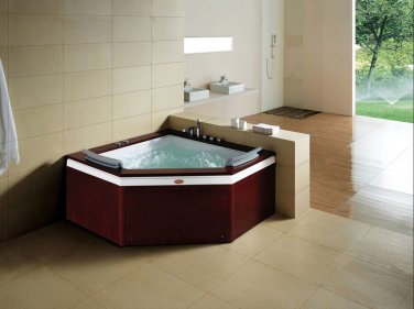 2 Person Luxury Massage Hydrotherapy Solid Wood Diamond Bathtub, With Bluetooth, Inline Water Heater