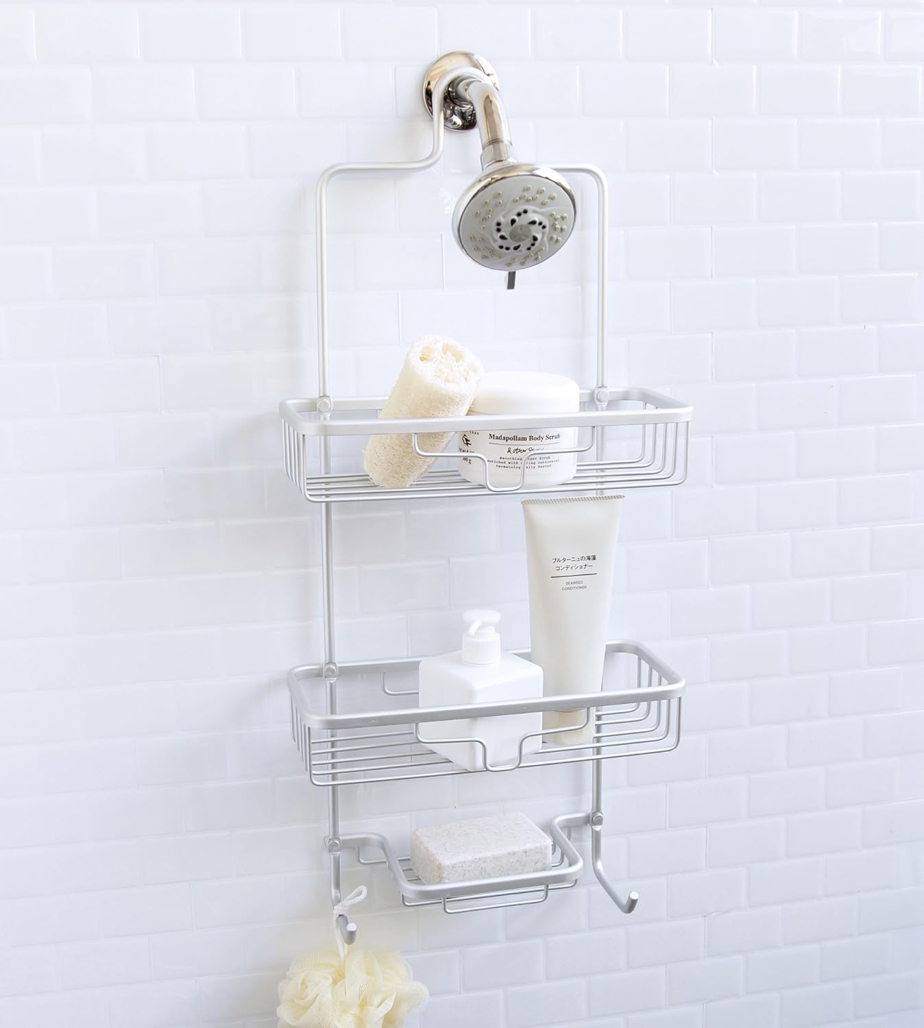 Rust Proof Aluminum Shower Caddy In Matte Silver Mercer 3 Tiered Organizer Made With Heavyweight Anodized Aluminum ; 26" Tall Rack Has Storage Shelf For All Your Bathroom Accessories, Tote, Bath 30%Off